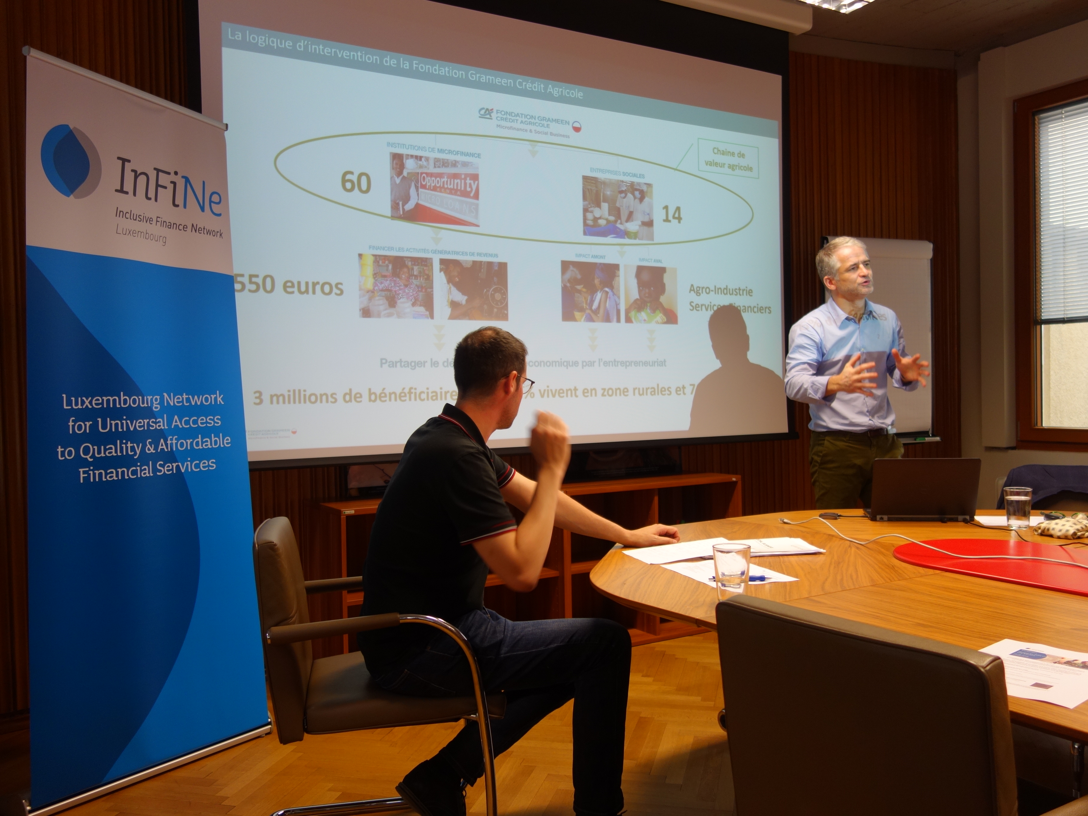 Mardi 29 mai, Eric Campos, CEO de la Fondation Grameen Crédit Agricole (FGCA), a présenté la conception du social business défendue par FGCA dans son Livre Blanc « Social Business ou Entrepreneuriat de l’utilité sociale ». Il a répondu aux questions de Jérémy Del Rosario, manager de microlux et des membres InFiNe.lu
