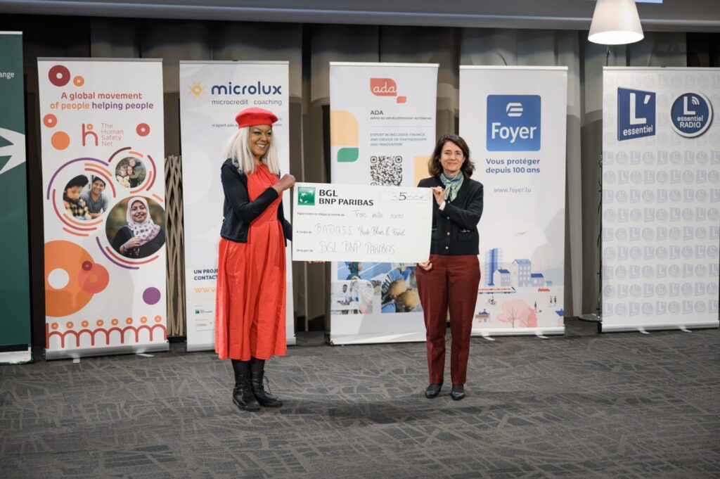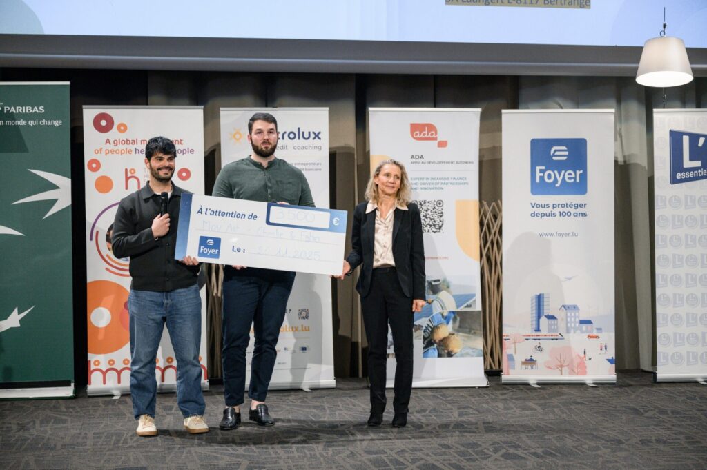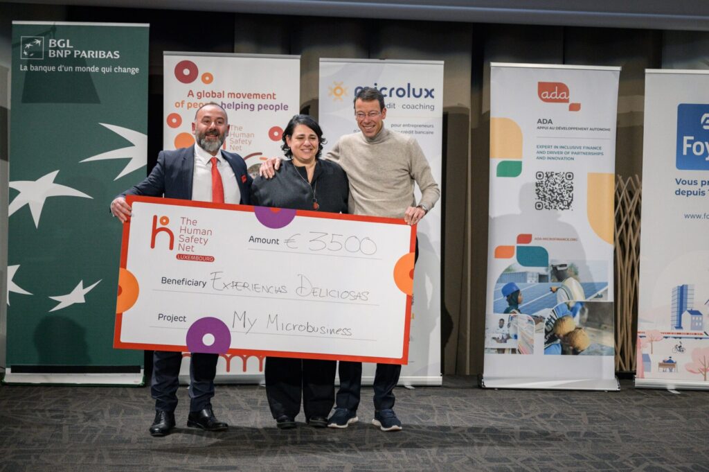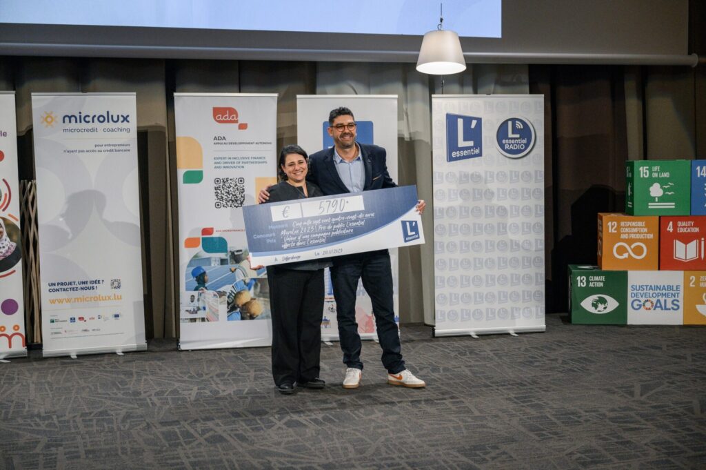 Invités sur scène, les lauréats ont partagé avec émotion leur parcours entrepreneurial. Choisis par les partenaires du concours, BGL BNP Paribas, Foyer, la fondation The Human Safety Net, ADA (Appui au Développement Autonome) parmi 19 projets pré-sélectionnés par microlux, ils ont chacun reçu un prix de 3 500€, destiné à soutenir le développement de leur activité.